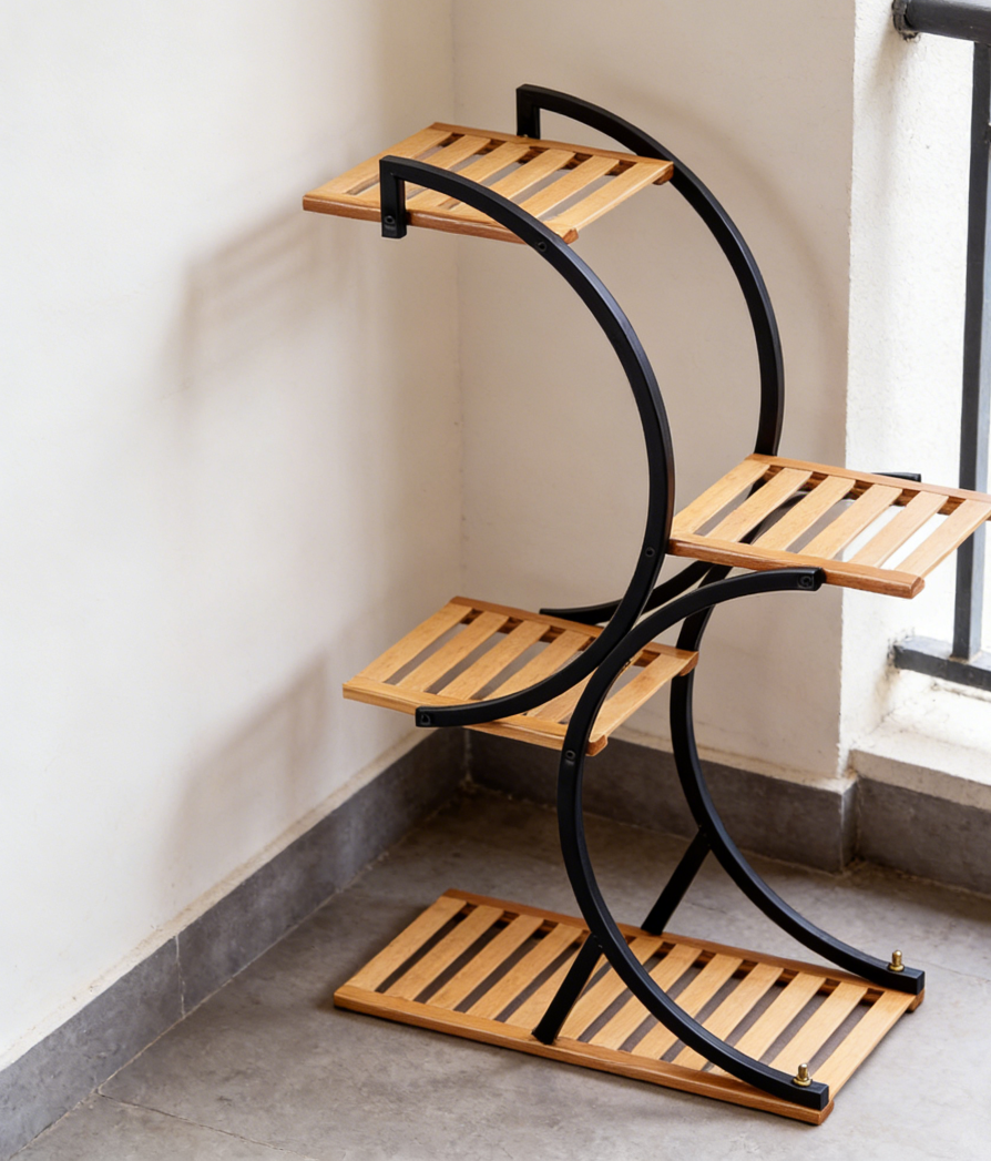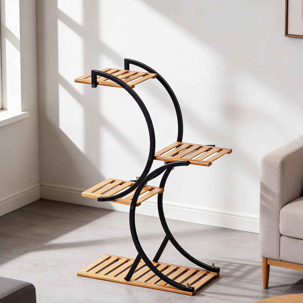The evenly spaced levels help create a balanced display, making it suitable for grouping plants in a structured way.