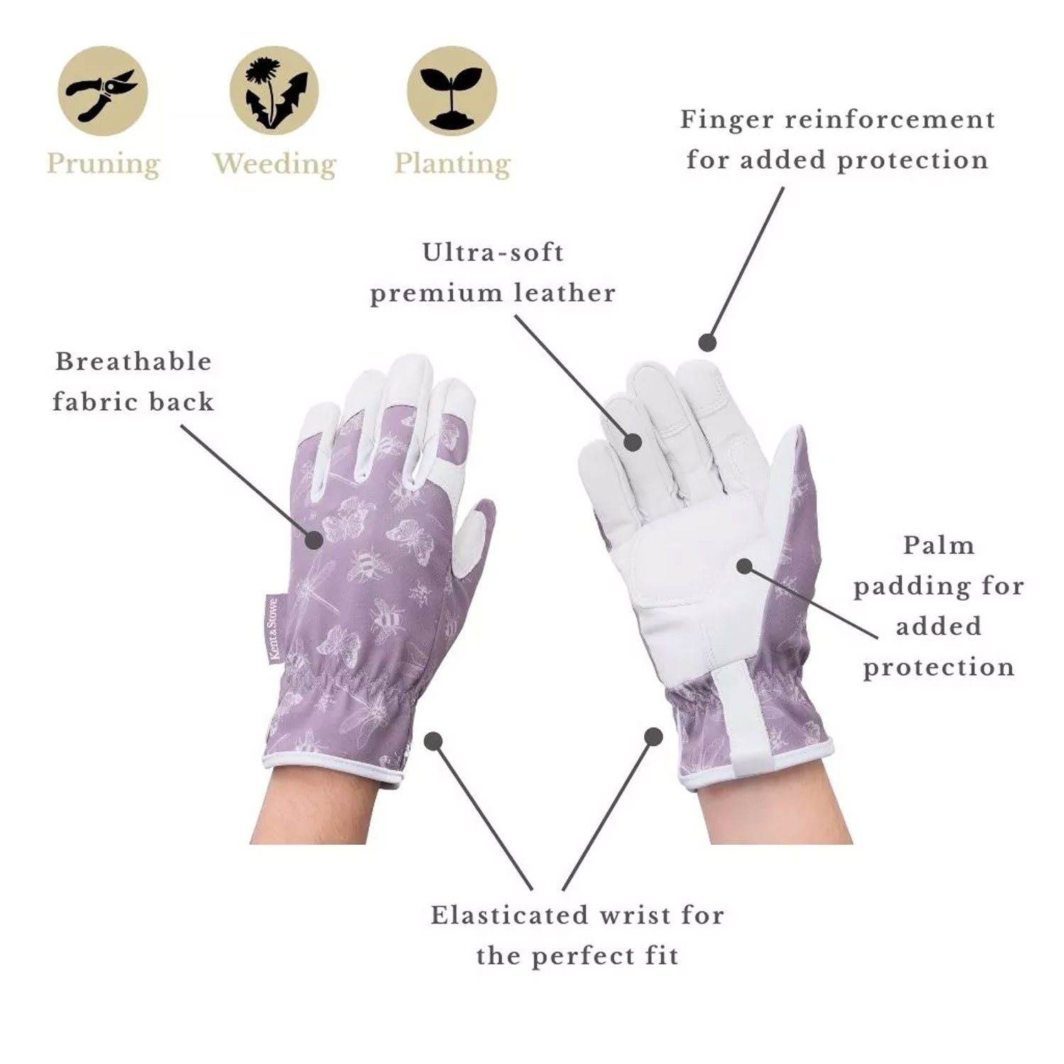 Kent and Stowe Leather Gloves FlutterBugs Purple Sml