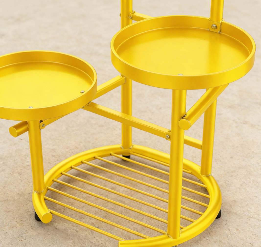 Metal Plant Stand with Yellow Flower Pot Holder and Shelf (set of 5)