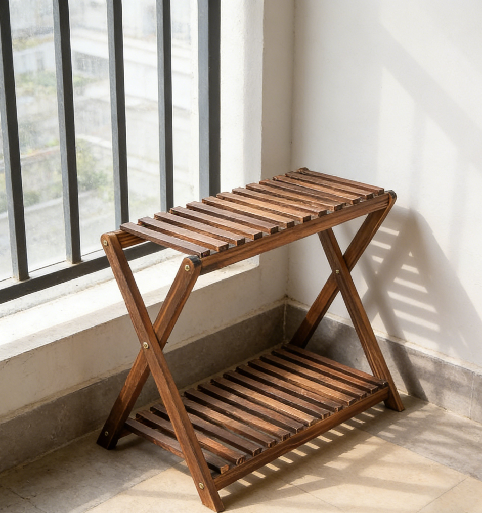 Slim Wooden Plant Stand with Cross Frame for Flower Pots (set of 4)