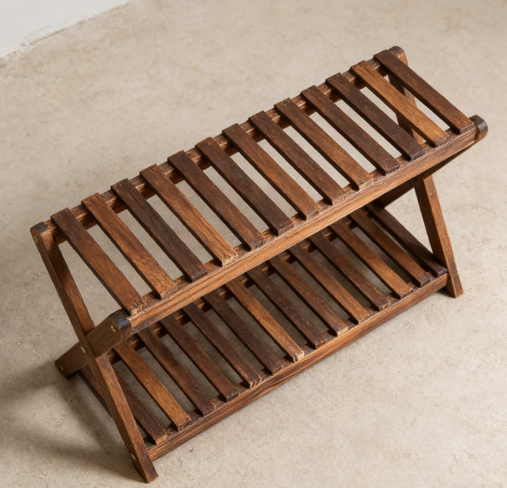 A slim-profile stand designed for tighter spaces, featuring a cross-frame structure for support.