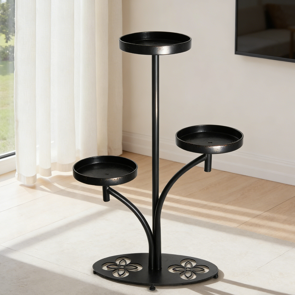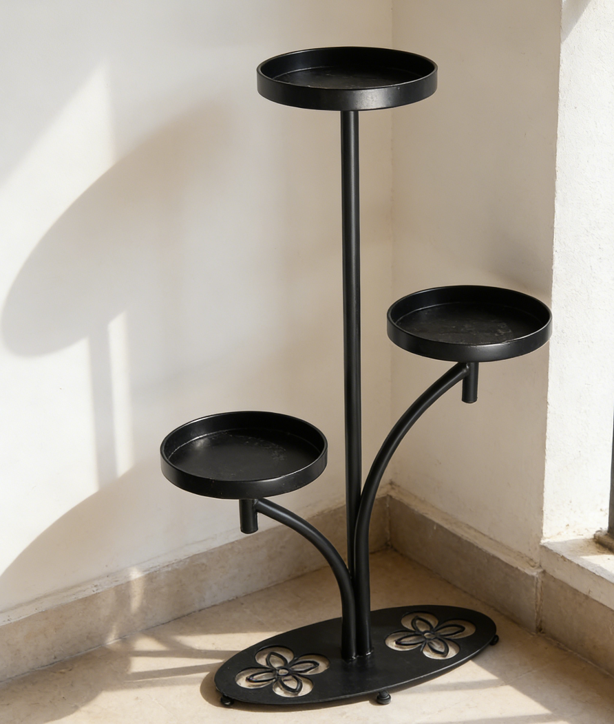 Tall Metal Plant Stand with Clover-Shaped Base in Black Finish (set of 5)