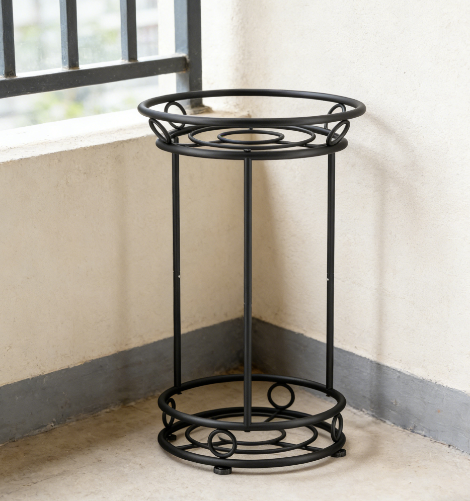 Tall Tiered Metal Plant Stand in Black with Flower Pot Holder (set of 2)
